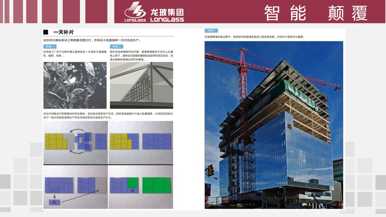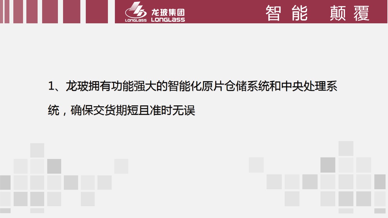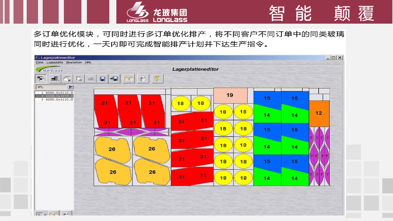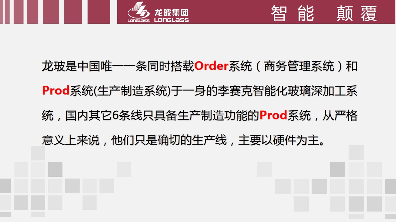 广东隆玻科技集团以科技赢先机,率先融入“工业4.0”先进理念,引进了全球最先进LISEC智能化玻璃深加工生产系统。该智能化玻璃深加工系统整合了LISEC全球100条玻璃生产系统所有优点,历时近两年时间,成功打造出智能化程度最高、功能最齐全、设计最先进的智能化玻璃深加工系统。同时拥有销售管理功能、客户管理功能、采购管理功能、实时动态优化功能、实时动态跟踪查询管理功能、极速补片功能、财务管理功能、永久溯源功能、远程定制功能于一身的智能化玻璃深加工生产系统,是玻璃界第一个真正意义上跨入“工业4.0”的集团化玻璃深加工企业。