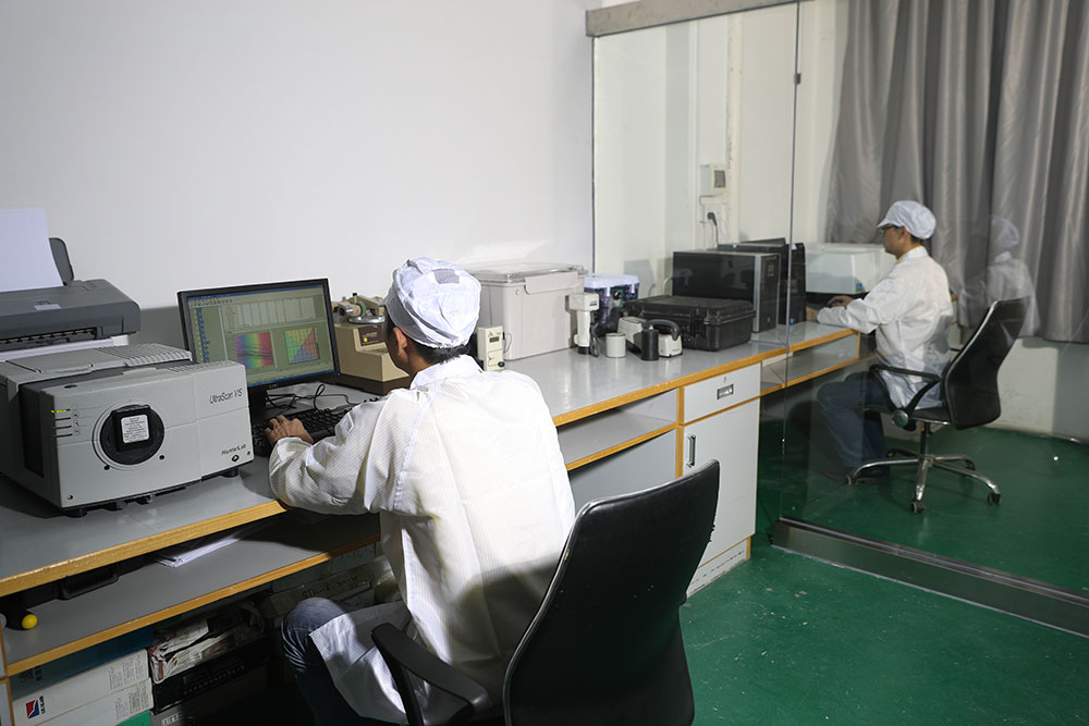 广东隆玻科技集团光学实验室组建于2010年9月10日,主要负责广东隆玻科技集团玻璃原片颜色的一致性监测、生产检测、外送样板出厂前颜色全检以及广东隆玻科技集团对外发布的所有镀膜产品光热学性能参数检测与计算。在硬件上拥有目前国内外最先进的美国进口Lambda 750S全光谱仪、美国进口UITRU Scan VIS台式光度计、日本进口UITRU Scan VIS手提光度计以及GSTR在线光度计。在人员配备上由一个敢于开发、善于管理、精于技术、团结奋发的年轻团队组成。本光学实验室出具的数据报告可以溯源至国家计量局数据。