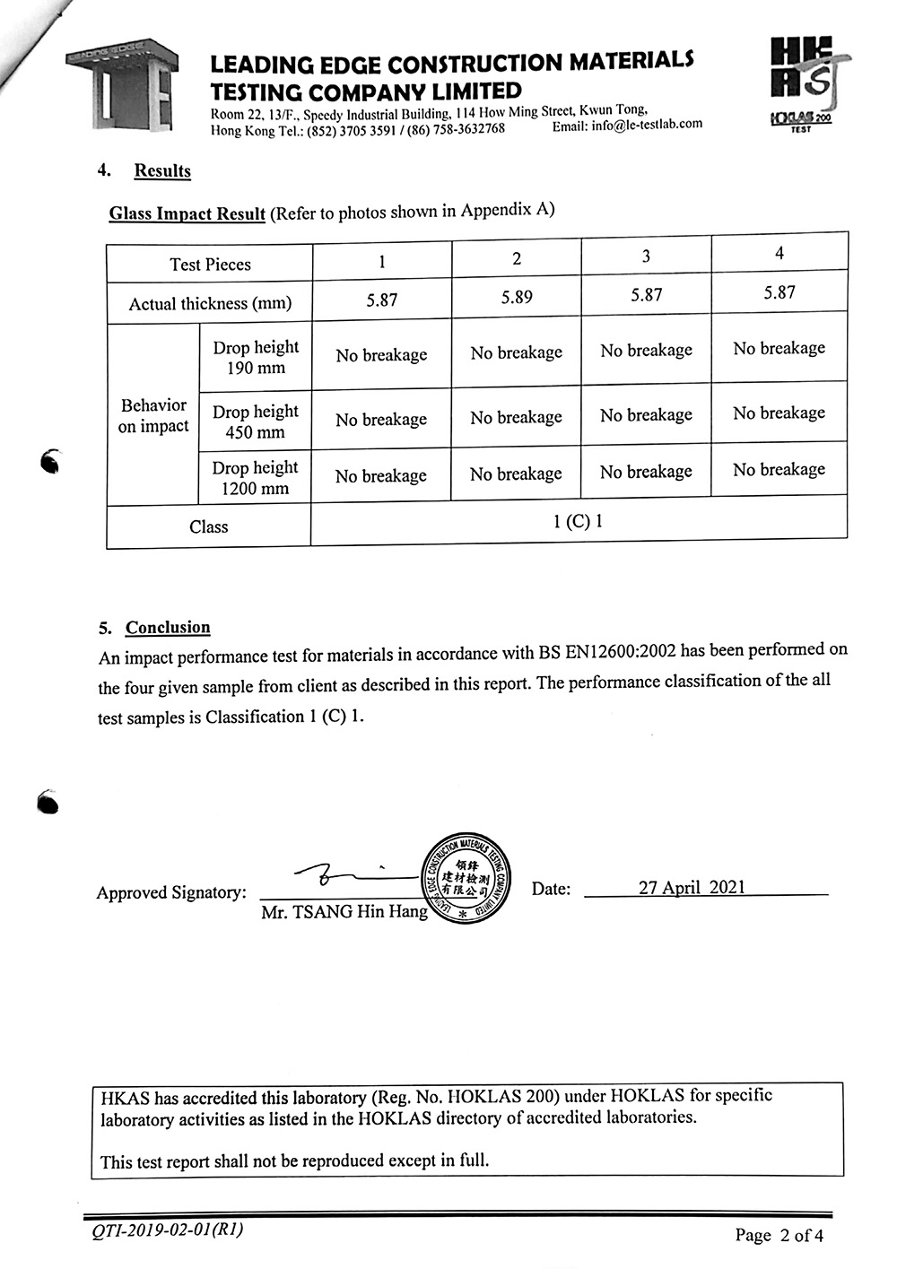 6mm白玻钢化撞击测试报告