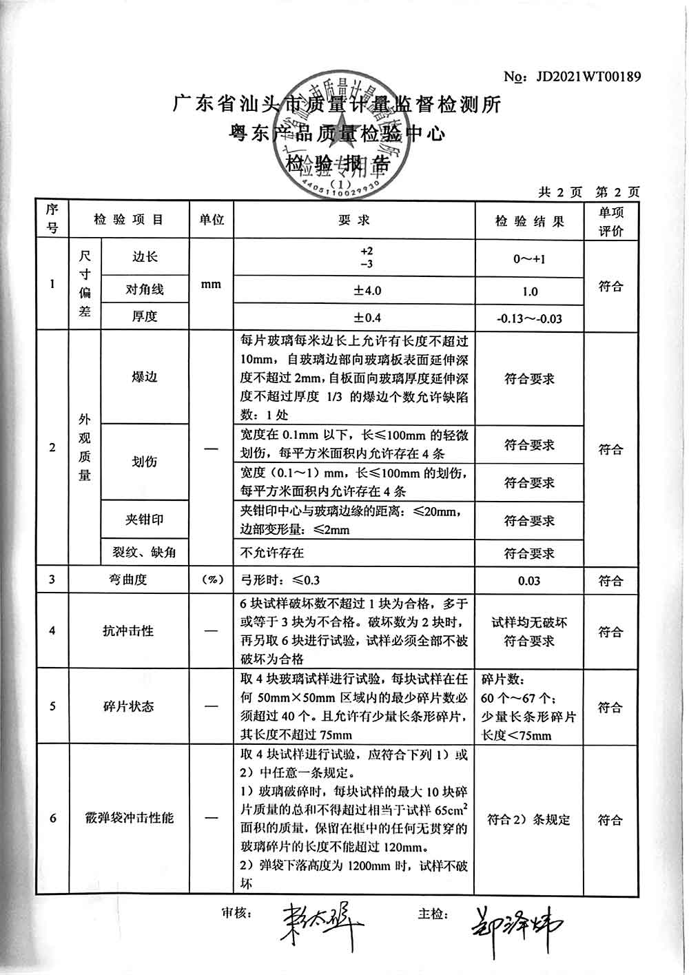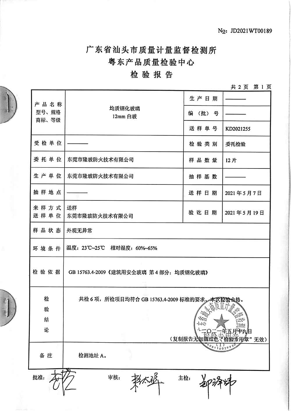 均质钢化玻璃12mm白玻检测报告
