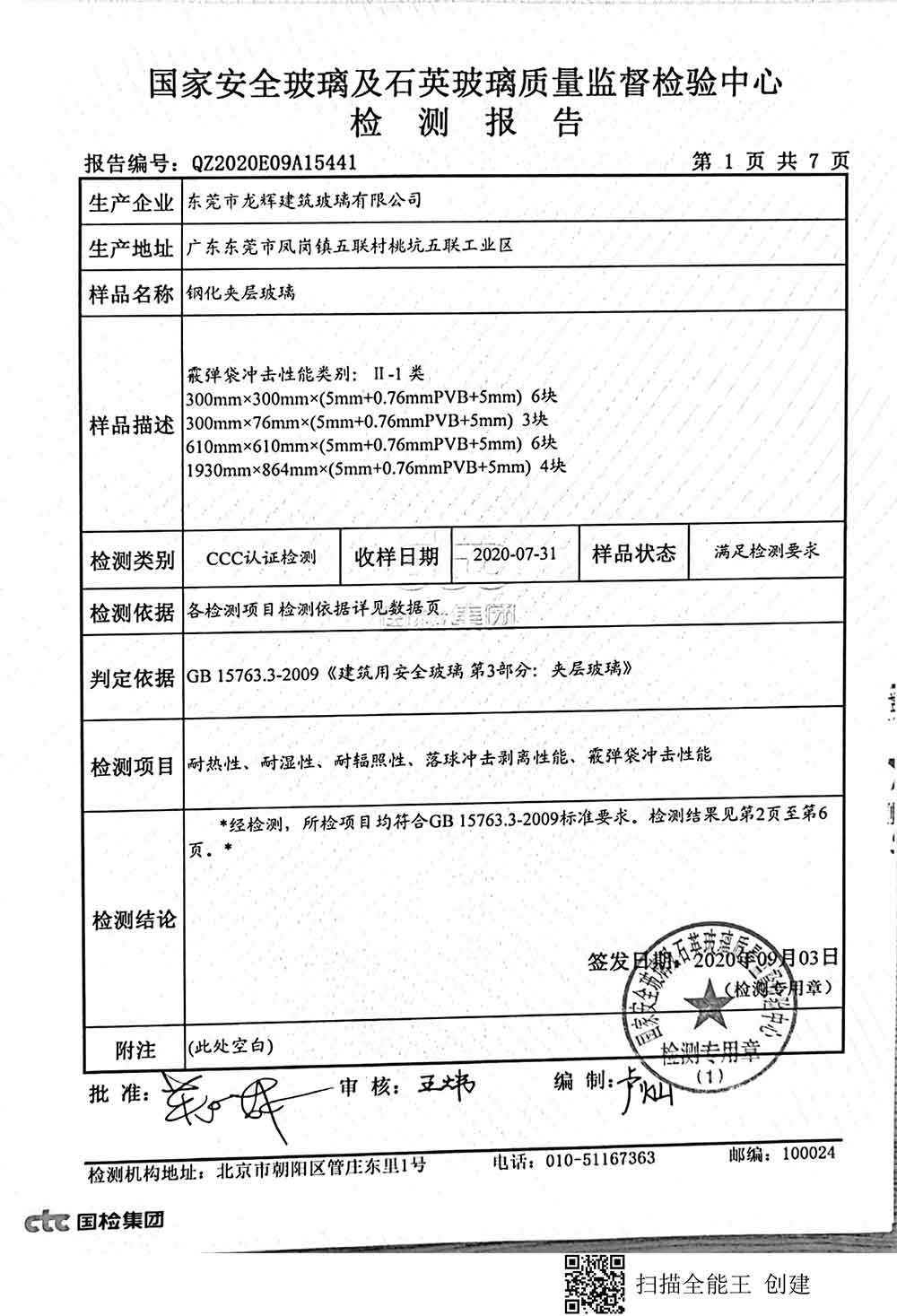 隆玻产品的各项技术指标均达到国家标准,通过国家检测认证机构检测认定,取得国家检验报告,所有产品均通过强制性产品认证。