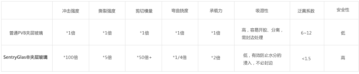 SentryGlas®夹层玻璃材料的高强度、高透明、耐久性,使其能轻易适应当今建筑市场的严格要求,超大尺寸夹层玻璃和多重夹胶玻璃制品更离不开SentryGlas®夹层玻璃材料夹胶膜。